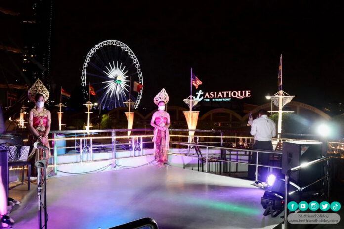 - จากนั้นเราก็รอเวลาขึ้นเรือเพื่อดื่มด่ำกับบรรยากาศและอิ่มอร่อยกับอาหารบุฟเฟ่ต์บนเรือกันได้เลยจ้า